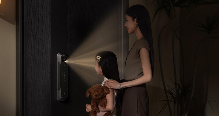 小米这次还带来了一款看着非常高端的智能门锁产品--小米智能门锁4 Pro,硬件搭载方面,它的门外搭载了智能猫眼摄像头、门内安排了高清可视屏,并在摄像头内集成了动态夜视成像系统,即便一片漆黑也能看的清清楚楚;它还支持降噪全自动锁体和直插式C级锁芯,开关门更安静、锁体防破坏能力更强,尤其是开关门这个很适合深夜回家的人。